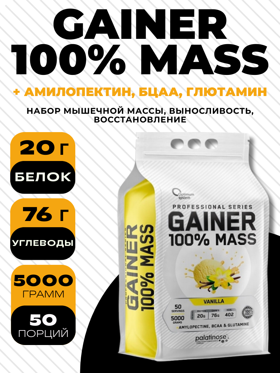 100% Mass Gainer Optimum System — надёжный помощник для тех, кто стремится к максимальному результату в наборе массы.