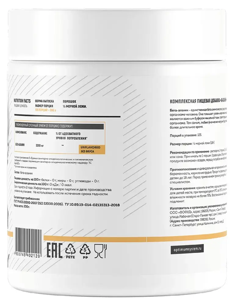 - Не содержит лишних добавок и наполнителей — только чистый бета-аланин