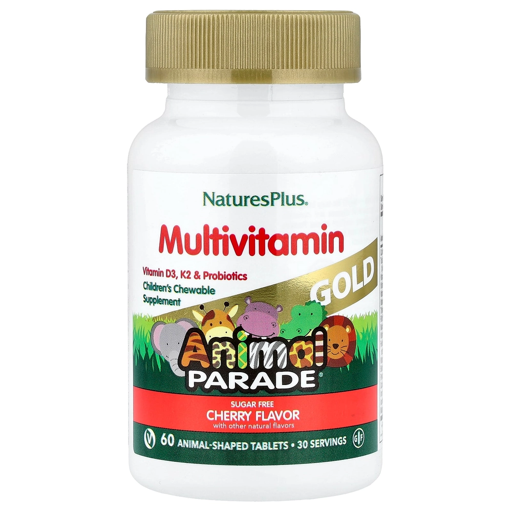 Animal Parade Gold Natures Plus — это специально разработанная детская мультивитаминно-минеральная добавка в форме жевательных таблеток в виде забавных фигурок животных. Формула содержит сбалансированный комплекс из 16 витаминов и минералов, включая ключевые для роста и развития нутриенты, такие как витамины A, C, D3, цинк и железо. Продукт представлен в двух популярных вкусах, не содержит искусственных красителей и подсластителей, превращая ежедневный прием витаминов в увлекательную игру для детей.