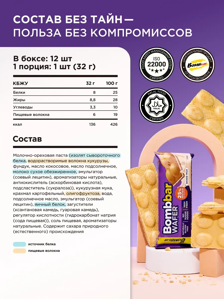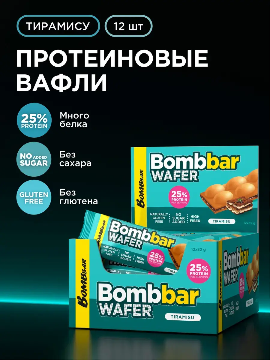 Вафельный батончик WAFER от Bombbar — это изысканный низкокалорийный десерт с нежными вафельными слоями и шоколадной глазурью.