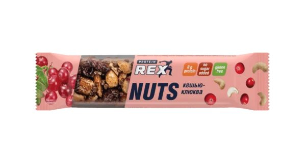 Батончик ореховый NUTS ProteinRex — это протеиновый батончик без добавленного сахара, созданный из цельных орехов и ягод. Каждый батончик содержит 8 г белка и не содержит сахара и глютена, что делает его отличным выбором для сбалансированного перекуса в течение дня и после физических нагрузок. В составе используются качественные ингредиенты: европейский протеин, натуральный пребиотик, цельные орехи и ягоды.