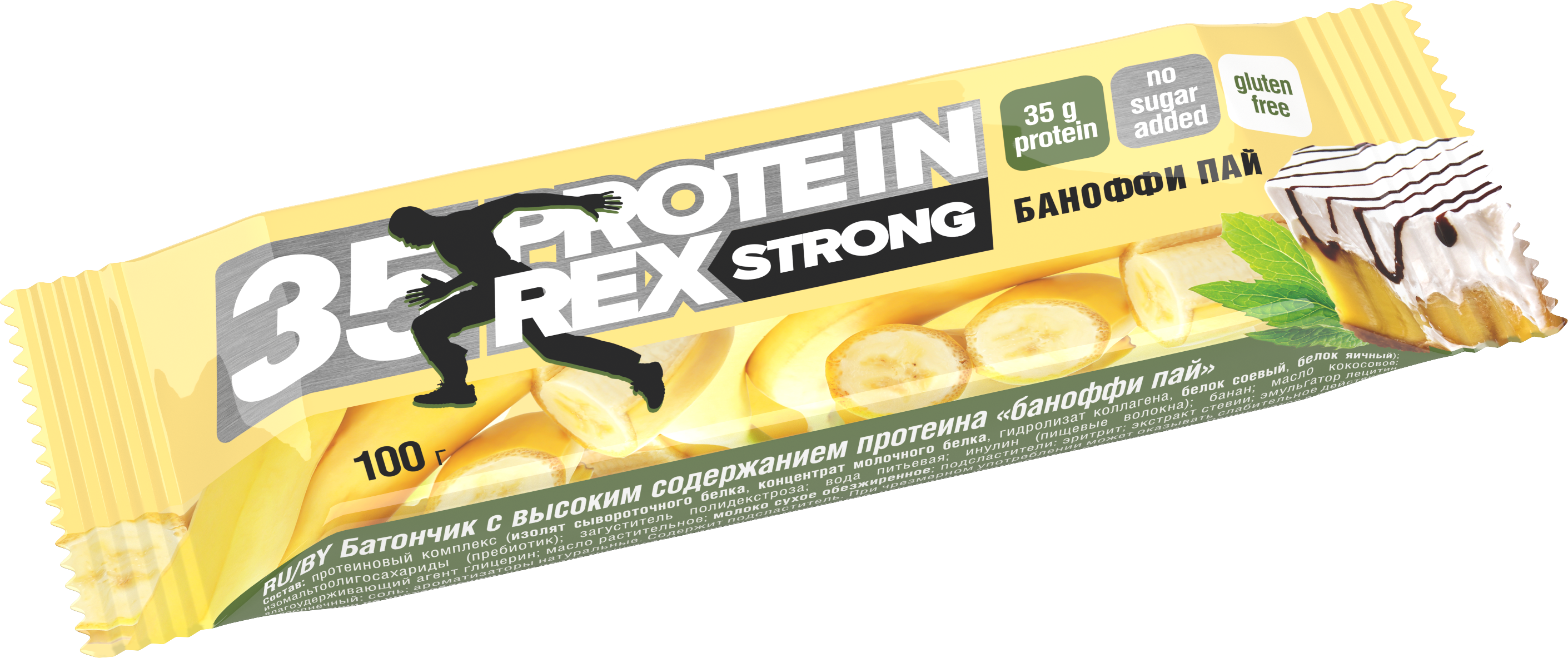 • Состав: протеиновый комплекс (молочный белок, гидролизат коллагена, соевый белок, яичный белок), подсластитель мальтит, полидекстроза (натуральные растворимые пищевые волокна, стимулирующие рост бифидобактерий), влагоудерживающий агент глицерин, какао-порошок (для соответствующих вкусов), заменитель масла какао, молочный жир, карамельный сироп, сухое молоко, какао тертое, масло какао, эмульгатор лецитин соевый, ароматизаторы натуральные. Для вкуса "Баноффи пай" дополнительно входит банан. Точный состав варьируется в зависимости от вкуса и указан на упаковке.