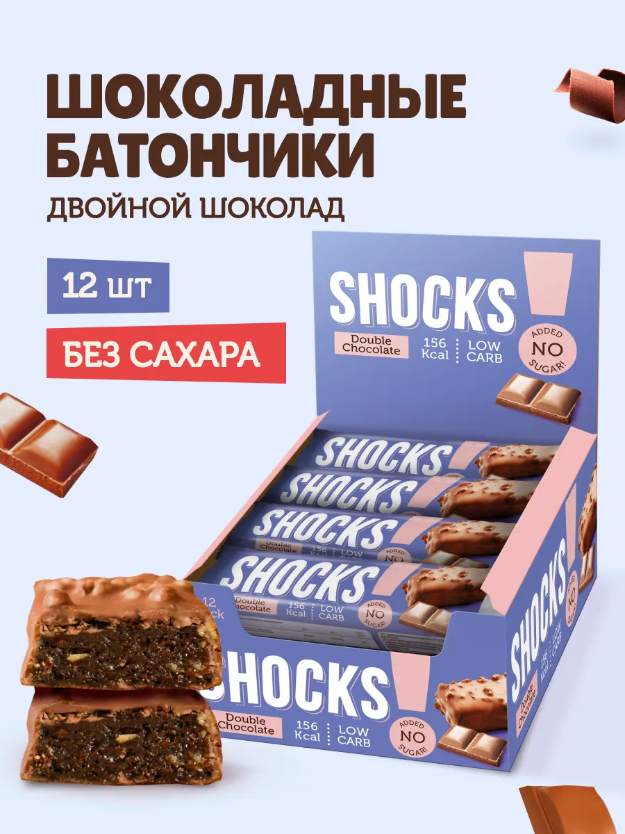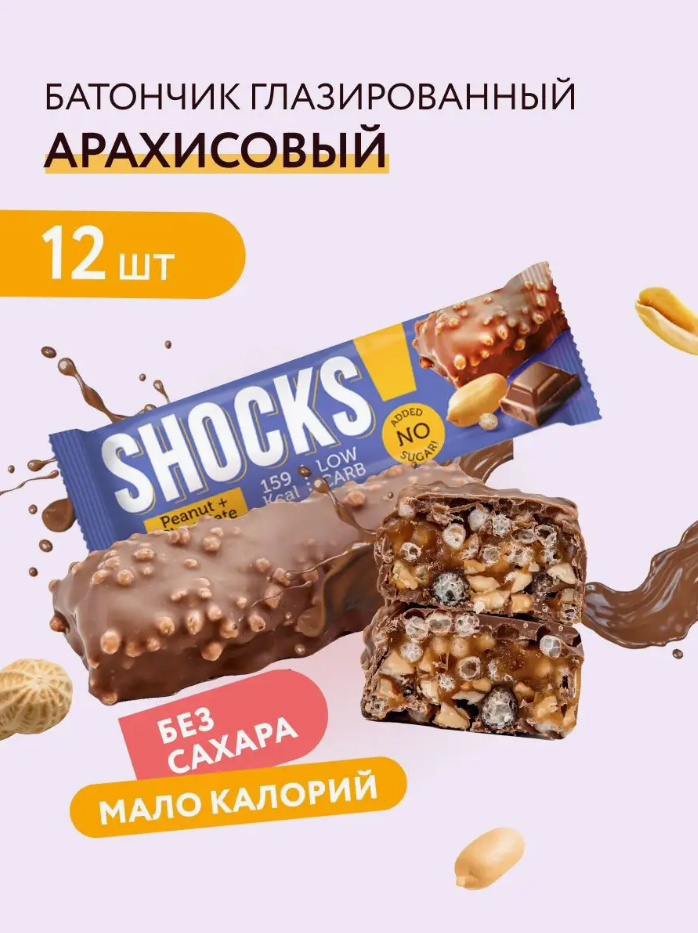 Батончик - SHOCKS! FitnesShock — это коллекция батончиков с неожиданными текстурными сочетаниями и яркими вкусами, созданная для тех, кто ищет новые впечатления в мире здоровых снеков. Каждый батончик весом сочетает в себе нежную белковую основу с необычными хрустящими элементами.