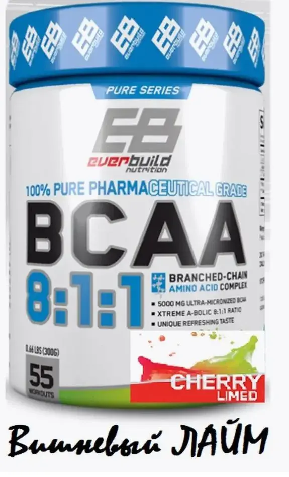 BCAA 8:1:1 Everbuild Nutrition — это высококонцентрированные аминокислоты с разветвленной цепью в оптимальном соотношении для быстрого восстановления и защиты мышц. Упаковка 300 гр содержит 55 порций усиленной формулы.
