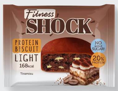 Бисквит - Protein Light FitnesShock — это нежный и воздушный протеиновый бисквит с пониженной калорийностью, созданный для тех, кто ценит легкость и изысканный вкус без компромиссов. Каждый бисквит весом обладает классической мягкой, пористой текстурой. Это идеальный выбор для легкого перекуса или завершения трапезы с ощущением свежести.
