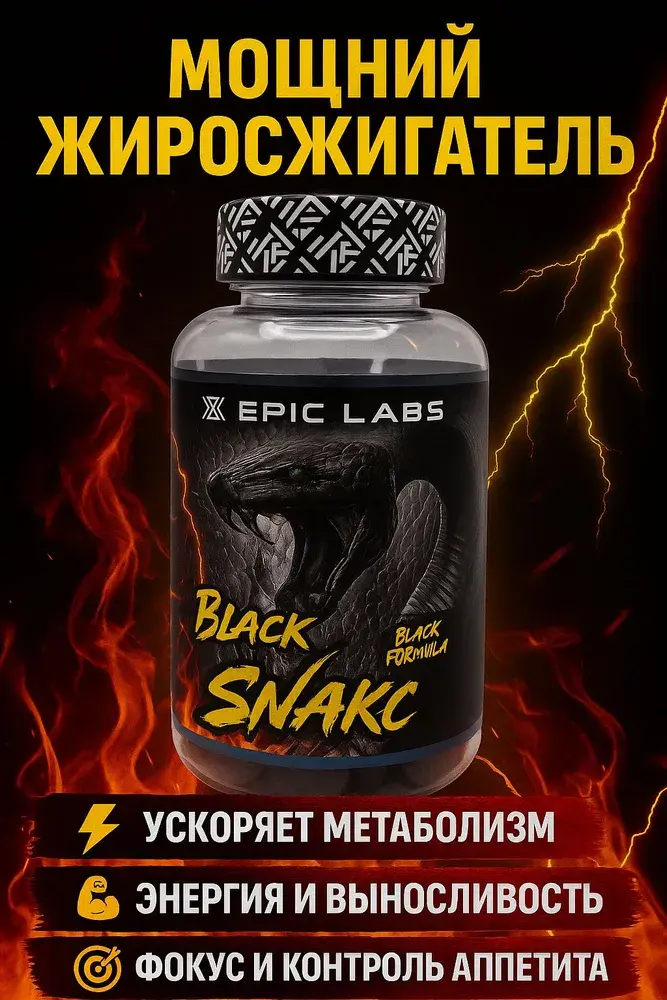 Black Snake Epic Labs — это мощный жиросжигающий комплекс премиум-класса для экстремального похудения и сушки. Упаковка 60 капсул содержит 60 порций усиленной формулы для ускорения метаболизма и быстрого жиросжигания.