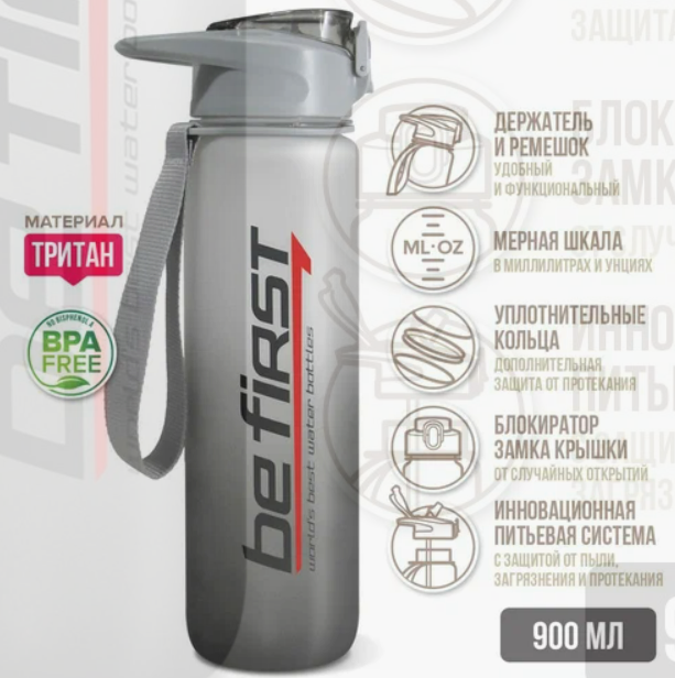 Бутылка SN2035 от Be First — это стильная спортивная бутылка с градиентным дизайном для поддержания оптимального водного баланса. Объем 900 мл идеально подходит для тренировок и повседневного использования.