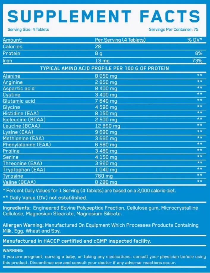 • Аминокислоты из гидролизованного говяжьего белка: 8000 мг
