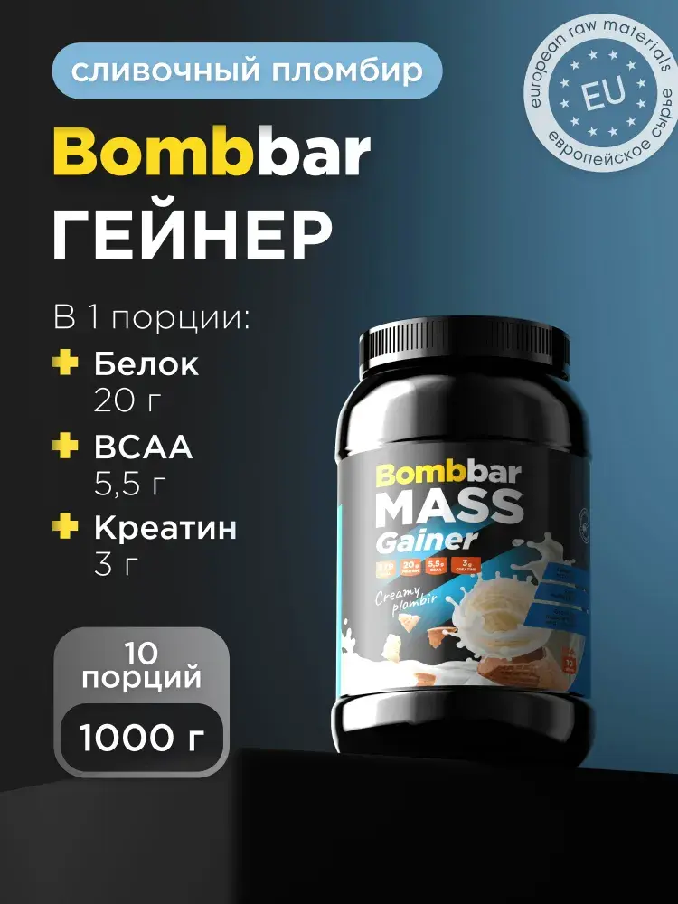 Gainer Pro от Bombbar — это мощная углеводно-белковая смесь премиум-класса, разработанная для быстрого набора качественной мышечной массы. Упаковка 1000 г содержит 10 увеличенных порций с усиленной формулой: 20 г белка, 3 г креатина и 5,5 г BCAA в каждой порции.