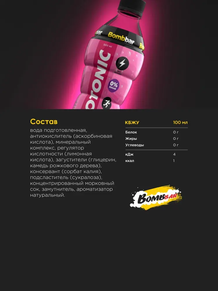 Изотонический напиток PRO от Bombbar — это формула для восстановления водно-электролитного баланса во время и после интенсивных тренировок. Бутылка 500 мл содержит сбалансированную комбинацию электролитов.