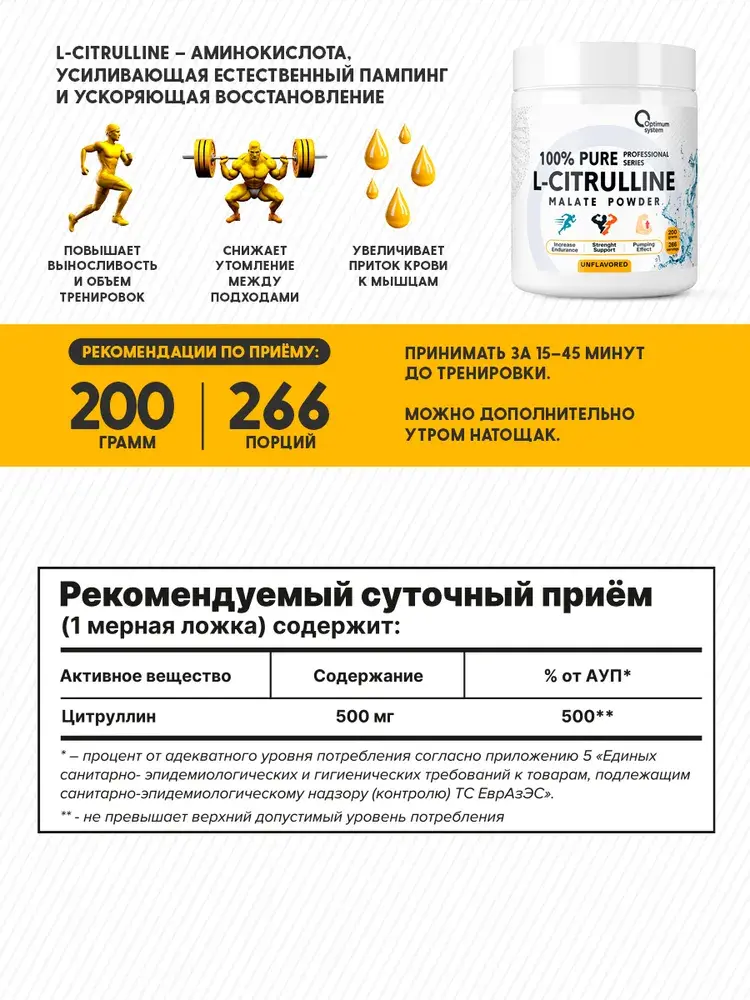 Форма: L-Citrulline Malate (2:1) — 200 г.