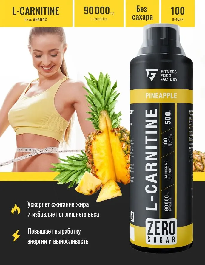 L-карнитин 90000 мг от Fitness Food Factory — это высококонцентрированный жидкий L-карнитин в форме L-тартрата. Мощная формула для поддержки энергообмена, усиления выносливости и оптимизации использования жиров в качестве источника энергии во время кардио и высокоинтенсивных тренировок.