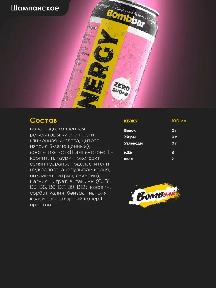 Энергетик с L-Карнитином от Bombbar — это низкокалорийный энергетический напиток для повышения тонуса, концентрации и активации жиросжигания. Бутылка 500 мл содержит оптимальную дозу L-карнитина.