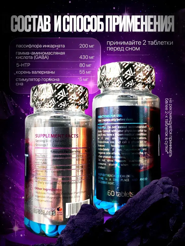 Night Dream от Epic Labs — это инновационная формула для улучшения качества сна и глубокого восстановления организма. Упаковка 60 таблеток обеспечивает полноценный двухмесячный курс для нормализации циркадных ритмов и повышения качества ночного отдыха.