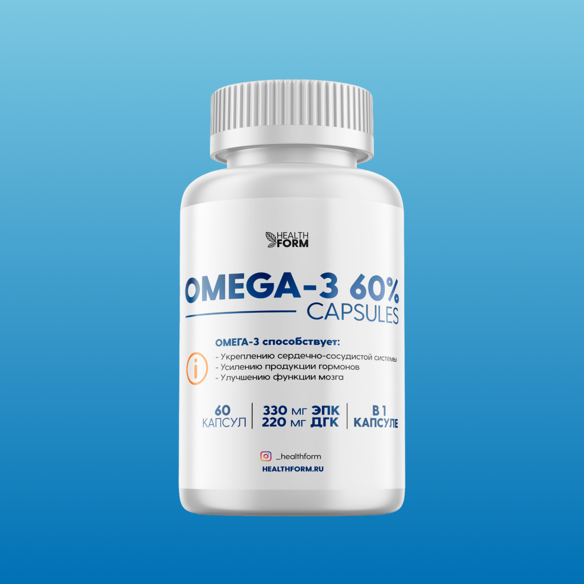 Omega-3 60% Health Form — это высококонцентрированный комплекс омега-3 кислот, созданный для эффективной и быстрой поддержки сердечно-сосудистой, когнитивной функции и борьбы с воспалением. Упаковка содержит рыбий жир с одной из самых высоких степеней очистки на рынке — содержание омега-3 составляет 60% от общего состава, обеспечивая максимальную дозу активных EPA и DHA в каждой порции. Это профессиональный подход к профилактике и коррекции дефицита.