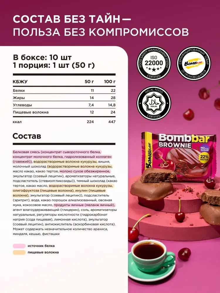 Печенье Брауни от Bombbar — это изысканное низкоуглеводное печенье с плотной влажной текстурой, созданное для настоящих ценителей шоколадных десертов.