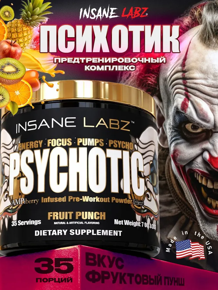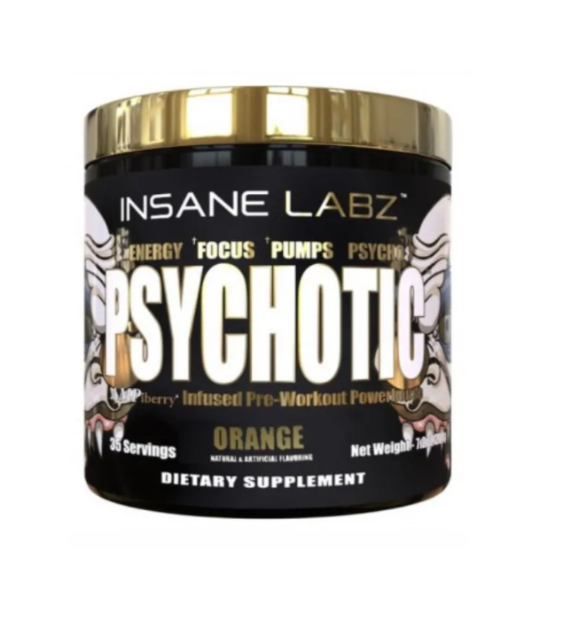 Psychotic Gold Insane Labz — это премиальный предтренировочный комплекс, разработанный для атлетов, стремящихся к экстремальной производительности без компромиссов. Формула сочетает мощную стимуляцию, глубокий пампинг и когнитивную фокусировку для тренировок высочайшей интенсивности. Упаковка обеспечивает готовность к максимальным нагрузкам и преодолению любых пределов.