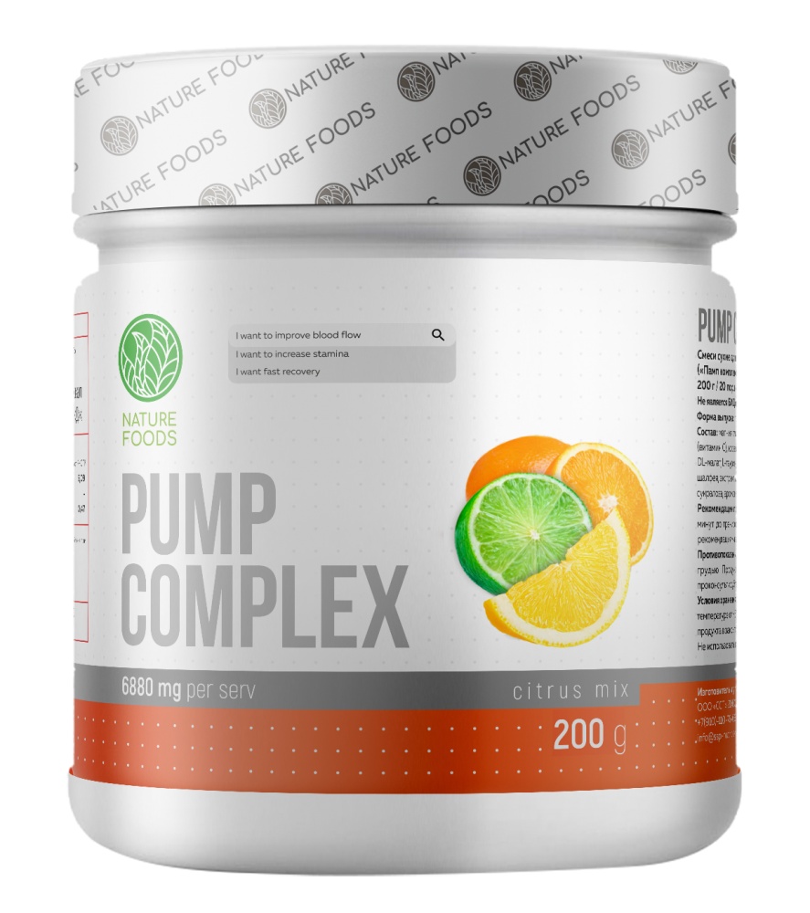 Pump Complex Nature Foods — это мощный предтренировочный комплекс, специально разработанный для достижения максимального и продолжительного пампинга (наполнения мышц кровью), повышения выносливости и фокуса во время тренировки. Порошок содержит синергетическую смесь ключевых донаторов оксида азота (NO), стимуляторов кровотока и ментальных усилителей в пяти вкусных вариантах, обеспечивая мощный прилив энергии без чрезмерной стимуляции.