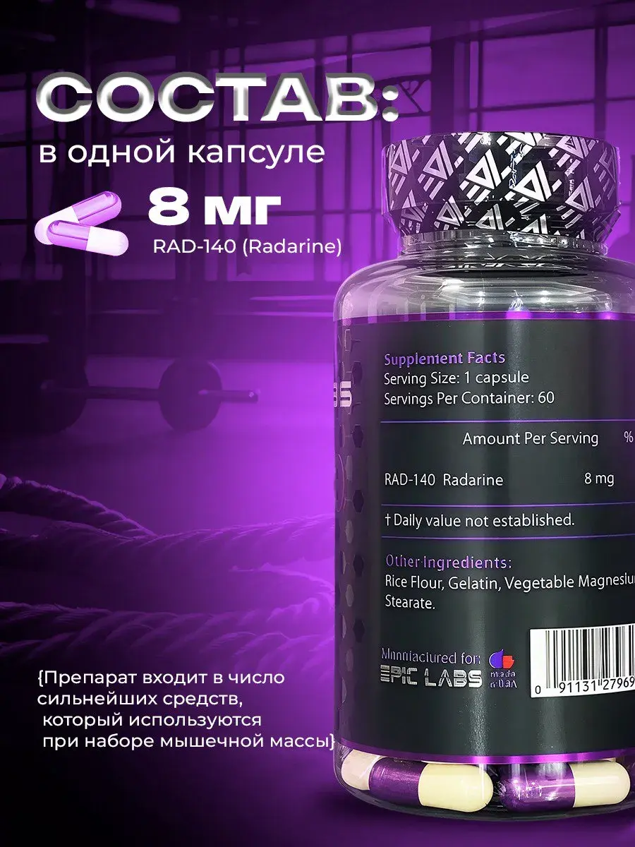 Radarine от Epic Labs — это селективный модулятор андрогенных рецепторов (SARM) нового поколения для экстремального роста сухой мышечной массы и увеличения силовых показателей. Упаковка 60 капсул содержит 60 порций RAD-140 (Testolone) высшей очистки для максимальной эффективности и безопасности.