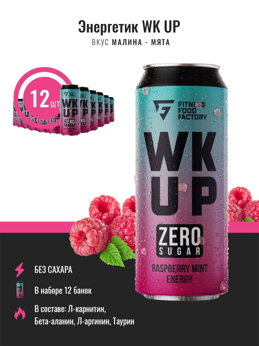 WKUP Zero Sugar от Fitness Food Factory — это коллекция тонизирующих напитков с полным отсутствием сахара, нулевой калорийностью и экстремальным разнообразием вкусов. В каждой банке заключена мощная доза кофеина, L-таурина и витаминов. Это не просто энергетик, а полноценный эксперимент для вкусовых рецепторов и социальный тренд.